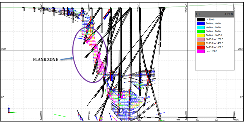 As can be seen in the diagram above, the Flank Zone is an area with consistently high grades. The proposed development plan for the Dasa uranium project is a twelve year, high-grade underground mine centred on the Flank Zone with a standalone plant using conventional processing techniques. An OPEA of this Phase One plan was started in late 2019 and results will be released in Q2, 2020.