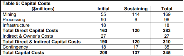 - $208 million capital costs include a 10% contingency