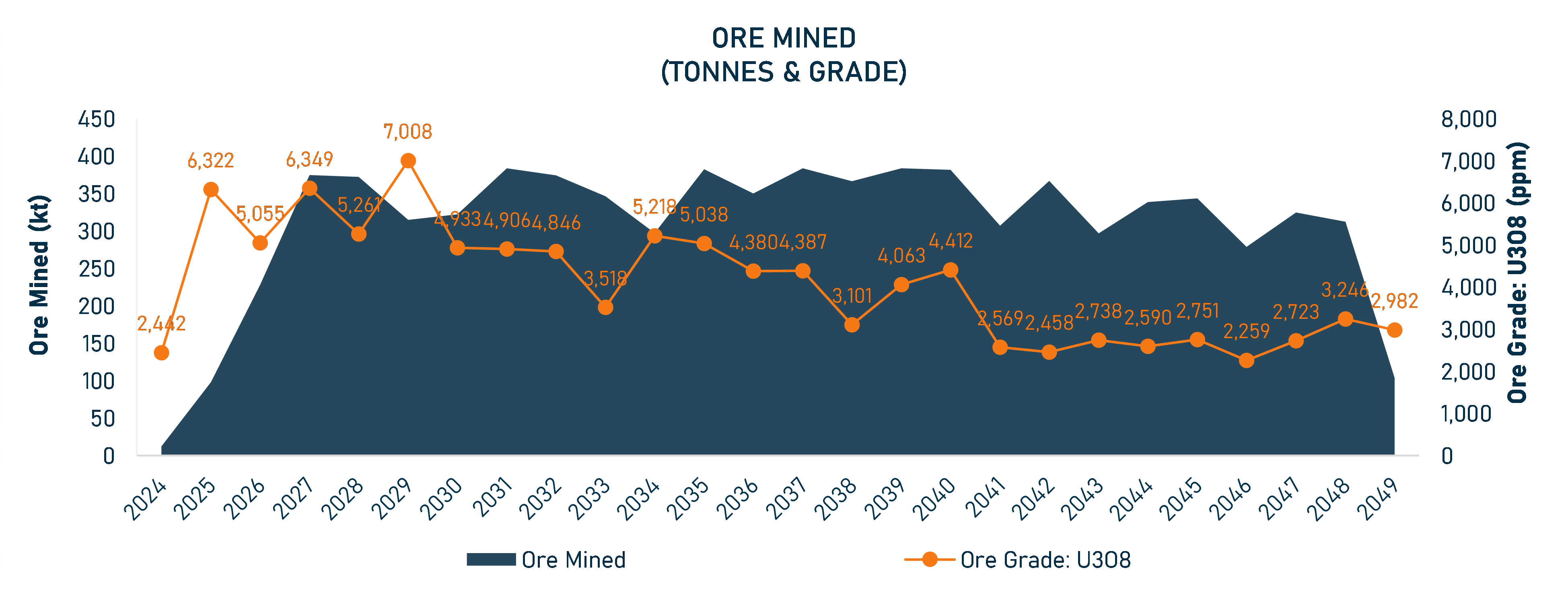 - Continue development of the underground ramp and site infrastructure to remain on schedule to supply uranium ore to the processing plant from the end of 2025.